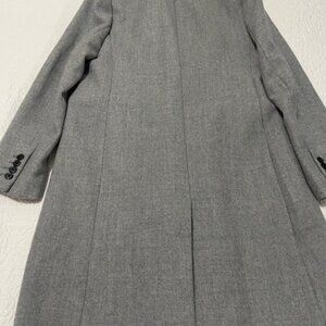 J.Crew Regent Topcoat Coat Double Serge Wool Light Heather Gray Size 10 This is a classic style coat and would be great for any wardrobe. Collar is trimmed in red, has 2 front pockets, 1 chest pocket and a pocket inside. Coat is fully lined and is in excellent pre-owned condition. There is slight wear around the neckline, probably from makeup-see photos. Smoke-free, pet-free home.