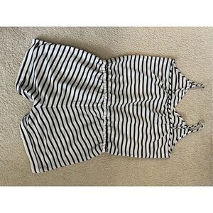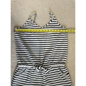Adorable 100% polyester J.Crew cuff bottom shorts romper. Elastic and tie waist for adjustability. Black and white stripe. Loose fit. Adjustable spaghetti straps. Side pockets. Like new! Cute addition to your spring summer wardrobe!