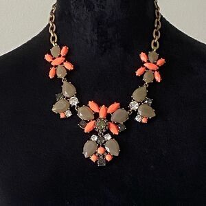 This gorgeous necklace features vibrant crystals. This will elevate any ensemble. There is moderate wear on this piece, but it has a lot of life left. Price reflects condition.