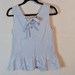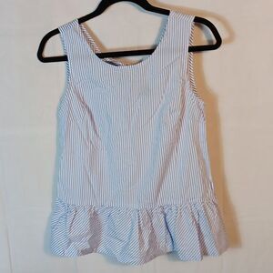 This blue and white striped sleeveless J.Crew peplum top is a size XXS with a pit to pit measuring 17" and a length of 24". In excellent condition. All offers are welcome.