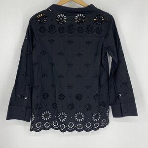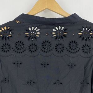 Black Funnel neck Cotton Poplin Embroidered Eyelet