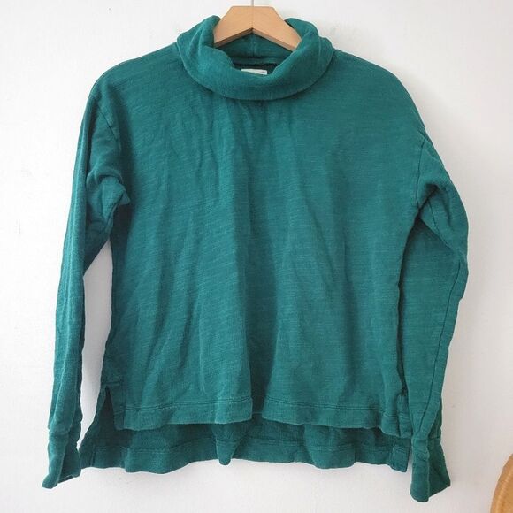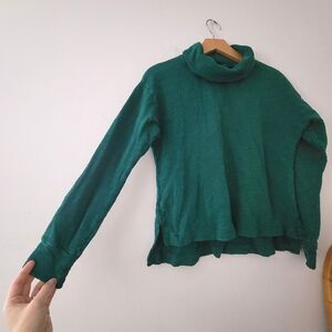 J.Crew Vintage Fleece Turtleneck Green Cotton Cropped Pullover XS