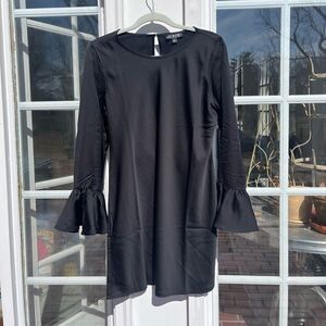 Gorgeous j crew winter garden dress. Never been worn, with tags attached. Pullover style. Dramatic trumpet sleeves. Falls above knee, 36 3/4" from high point of shoulder (based on a size 6).
