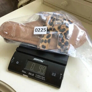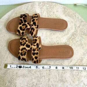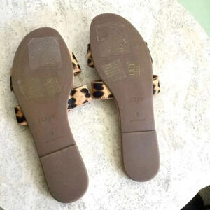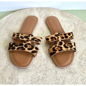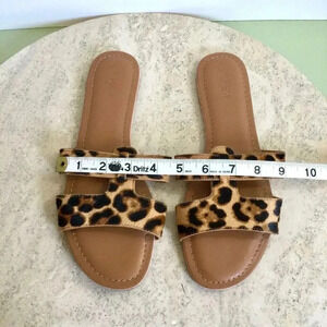 J.Crew Womens Brown Tan Leopard Print Fur Beachside Slide Sandals Size 9