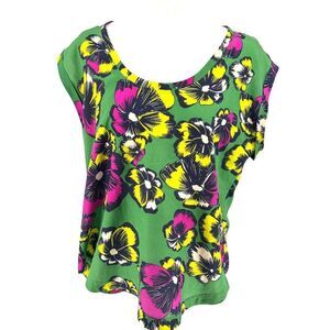 J.Crew Womens Green Floral Print Cap Sleeve Blouse Size 12 EUC Summer Vibes Prep