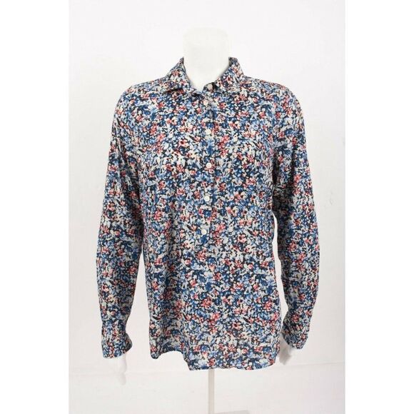 J.Crew Womens Shirt Top Blouse Popover Size M Navy Blue Floral 1/2 Button Front