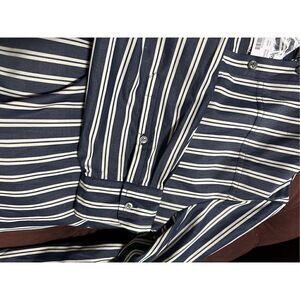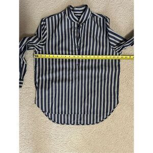 NWT J.CREW popover band-collar blouse.  Button front collar, button cuffs.  High low hem, 100% cotton.  Indigo, cream stripe. No longer available.  Orig $80