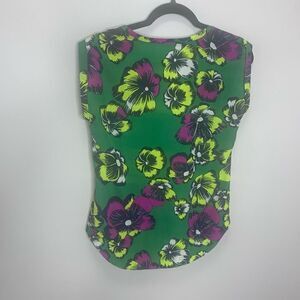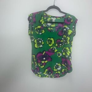 J Crew 0 petite green blouse floral BEAUTIFUL Top!