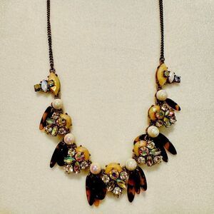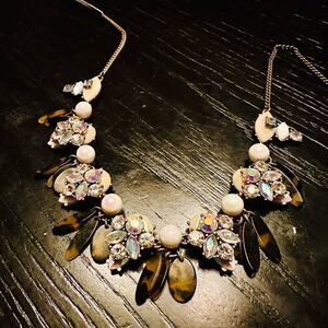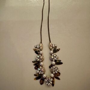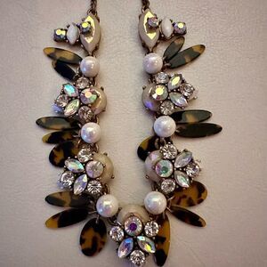 Make a statement in this beautiful, vintage style necklace by J. Crew. Featuring rhinestones, pearls and various beads on a gold tone chain. Length 23” with 2” extender and lobster clasp closure.