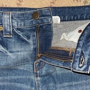 J. Crew whiskered denim cutoff shorts 25. No logo tag but imprinted buttons. Hem has stitching above cutoff line. Excellent condition never worn.