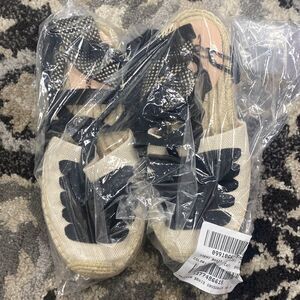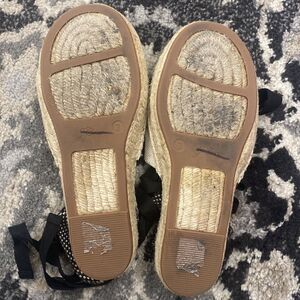 Notice rip on side of shoe — will need to be sewed back together. Please take note of marks on bottom of shoe.