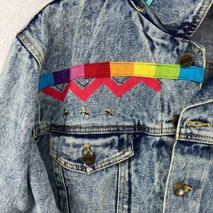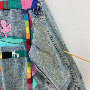 JD DESIGNWORKS Jacket Mens L Painted Applique Denim Trucker Button Up Blue VTG