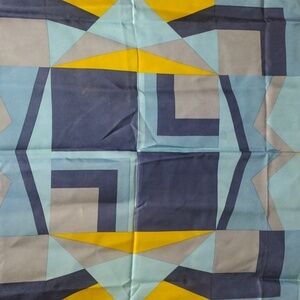 This J.D Dubois silk scarf measures 30x30 inches and features a colorful design in blue and yellow. Despite minor stain marks, it remains in good condition. This vibrant scarf adds a pop of color and elegance to any outfit. Made from high-quality silk, it showcases the brand's attention to detail and craftsmanship, making it a versatile accessory for both casual and formal occasions.