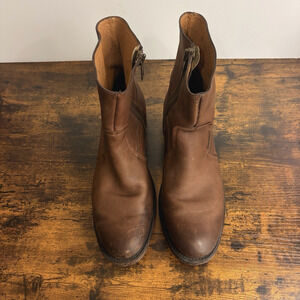 J.D. FISK Leather Ankle Boots Mens Sz 8.5 Brown Dale Side Zip Western Classic