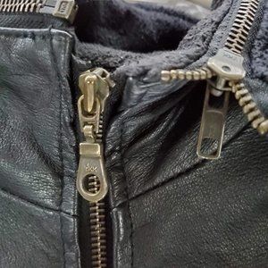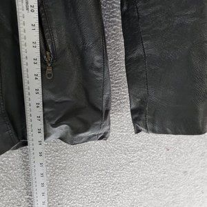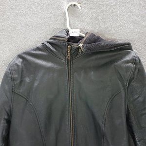 JD Italian Women Leather Jacket Large Black Leather Removable Hood Fleece READ