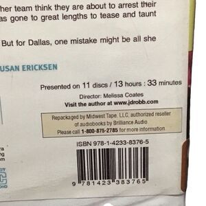 Unabridged audiobook 'Kindred in Death' by J.D. Robb. Includes compact disc format.