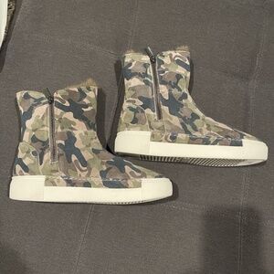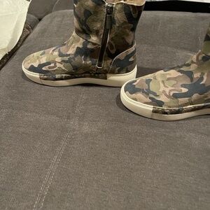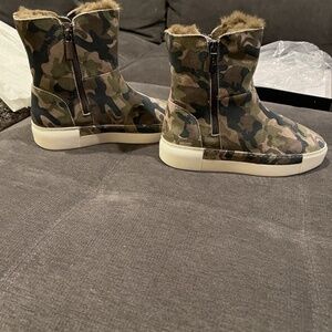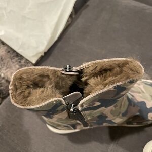 JD Slides Green Camo Suede Victory Boots Faux Fur Size 8.5 Booties