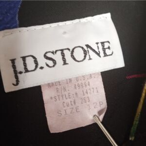 J.D. Stone 12 Black Multicolor Belt ShrtSlves SlitSides Rayon Women's Midi Dress