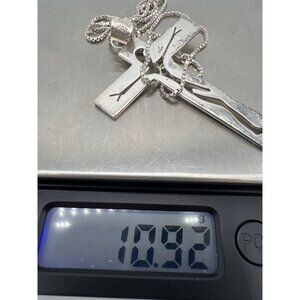 JDH 925 Mexico Sterling Silver Modernist 2.5" Crucifix Cross Pendant & 18" Chain