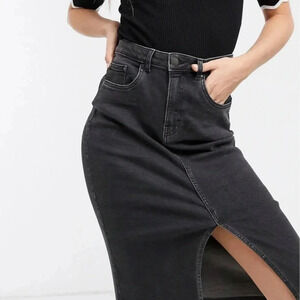JDY black wash denim pencil skirt with split in front. Size: 42 woman’s size 7