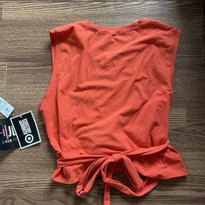 J.Dow Fitness Women XXL Red Orange Athletic Cropped Wrap Tank Top NWT