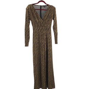 JEALOUS TOMATO SZ M gold zebra print faux wrap long sleeve retro jumpsuit B138