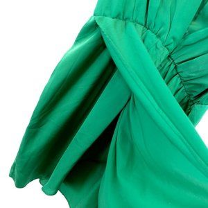 JEAN CLAUDE PIERLOT Green Fit & Flare Mini Dress SMALL Silky Surplice Sleeveless Features - Sleeveless, V-Neck, Pleated, Elastic waist, Silky, Fit & Flare style