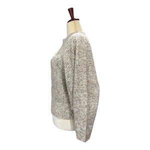 JEAN MACHINE WOMENS SWEATER TAN/CREAM/GREY LARGE SLEEVES PULLOVER MEDIUM.
