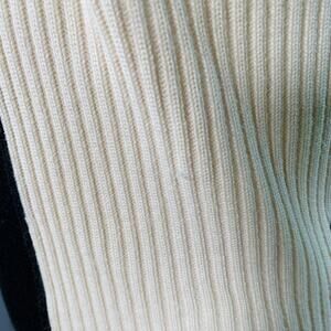 JEAN PAUL GAULTIER S Cream Green Wool Blend Knit Color Block Athletic Sweater
