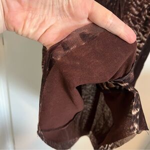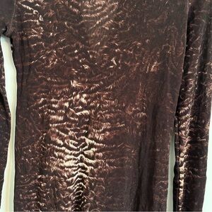 JEAN PAUL GAULTIER x FUZZI Mesh Animal Print Button Down Long Sleeve Midi Dress.V-neck. Subtle animal print peeking through chocolate brown body. Long sleeves. Fully lined. Made in Italy. Iconic piece!