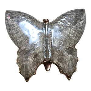 JEANETTE Glass Butterfly Trinket Dish with Gold Trim Accent Boho Glam
