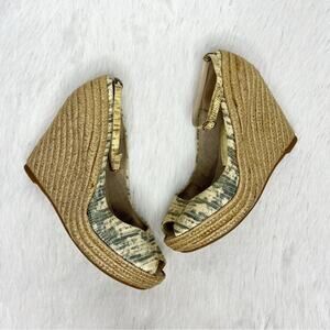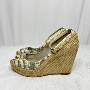 Jean Michael Cazabet gold green espadrille peep toe ankle strap wedges women's EU size 37