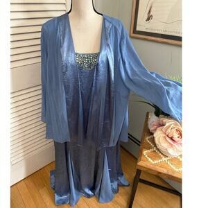 JEANNE ALEXANDER Womens Dress Set Blue Maxi Shift Mother of the Bride Jewel 22W