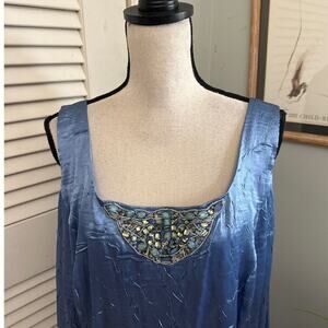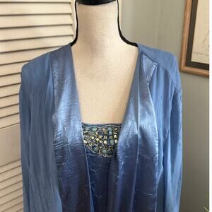 JEANNE ALEXANDER Womens Dress Set Blue Crinkle Satin Maxi Shift Sleeveless Dress with Open Chiffon Cardigan Jacket Bejeweled Neckline Mother of the Bride Wedding Special Occasion