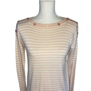 JEANNE PIERRE Cashmere Infused Striped Buttoned Sweater WOMENS Sz S Pink White