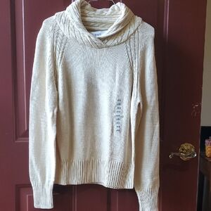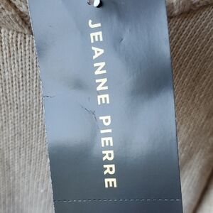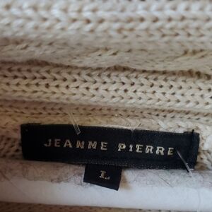 Experience the perfect blend of style and comfort with this JEANNE PIERRE sweater, showcasing a chic cowl neckline and a luxurious ribbed knit texture. The warm cream color adds a touch of sophistication, making it an ideal choice for both casual outings and business casual settings.