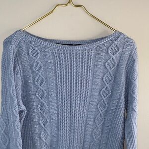 JEANNE PIERRE Soft Blue Cable Knit Sweater