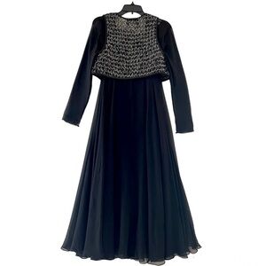 JEANNENE BOOHER Dead-stock Vintage Black Silk Georgette Dress with Sequin Vest