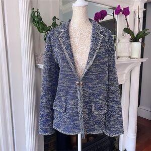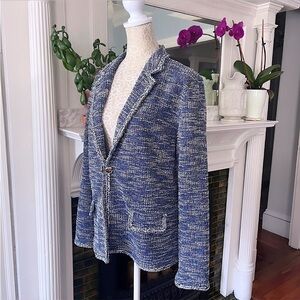 JEAN-PIERRE Blue & White Lightweight Tweed Blazer Size Medium