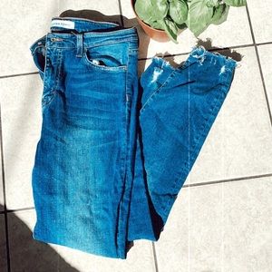 Super cute distressed bottom. Cute with heals, but comfy enough for everyday.