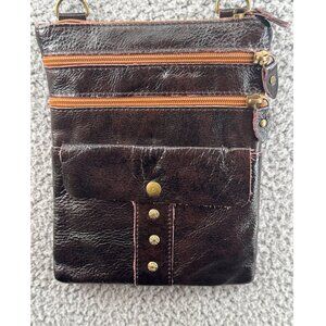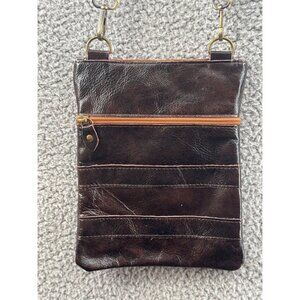 JEANS Brown Leather Crossbody Bag With Orange Zipper