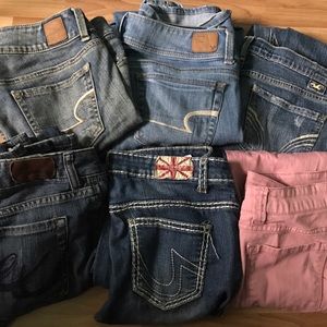 Cleaning out my closet and I just have too many pairs of jeans! You can buy separate or bundle all for $30. Not including shipping. Sizes are listed on the pictures.