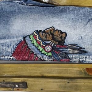 JEANS NATIVE AMERICAN EMBROIDERED RIPPED DISTRESSED SLIM SIZE 40 MENS DENIM