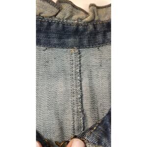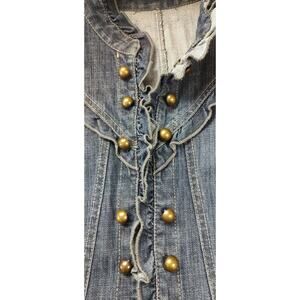 Womens Denim Vest Jean Vest Ruffled Collar Button Front Rustic Boho Size M