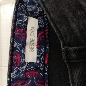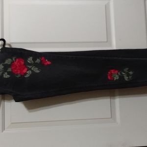 BLACK JEANS with STAND OUT RED ROSESw/ green stem-leaves,3 front pockets,2 back pockets,5 belt loops,front zipper& button closure.Bestie Jean
