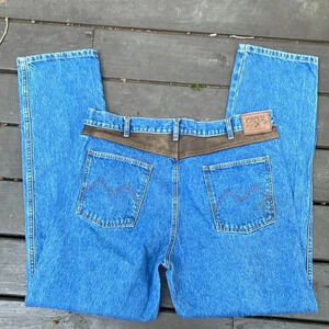 JEANS-MEN'S-MADISON CREEK OUTFITTERS-38x34-RELAX FIT-WORK-LEISURE-LEATHER YOKE