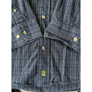 JEEP Logo Chrysler Shirt Men's L Blue/gray Long Sleeve Plaid Button Down Large