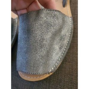 Elevate your shoe game with these Jeffrey Campbell sandals featuring silver leather accents and a unique tire tread sole. These slip-on flats are perfect for any occasion from formal events to casual outings, and their slip-resistant and non-slip features make them practical for any season. These limited edition sandals come in a size 10.5 US shoe size and 41 EU shoe size, with a comfortable flat heel style and M shoe width. The Jeffrey Campbell Sandals are made in Spain with high-quality leather lining and insole material.