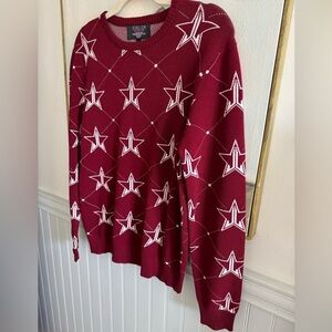 Jeffree Star Fashion Maroon Logo Pullover Sweater Very good condition Size large Pit to pit 22” Length 27” Sleeves 26” Shoulders 17” Maroon crew neck pullover sweater, Jeffree Star white logo all over, ribbed cuffs, collar, & hemline 75% rayon, 25% nylon