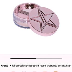 Jeffree Star new in box setting powder in Natural. This ultra-fine, soft, and luminous formula with light-reflecting pearls gives you a naturally radiant complexion. Infused with Vitamin C & E and a special blend of silica that controls oil that keeps you looking flawless all day. Experience the airbrushed Jeffree Star Approved luminous blurring effect.